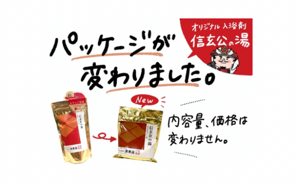 源泉舘では肌に優しい源泉水を使ったオリジナルグッズを販売中です。一番人気はやはりミネラルウォーター「信玄」です!甘みのある優しい味が特徴で、信玄でお米を炊...
