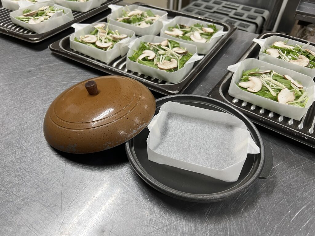 でも今日はメニューの関係で、クッキングシートをボックス型にしてみました!