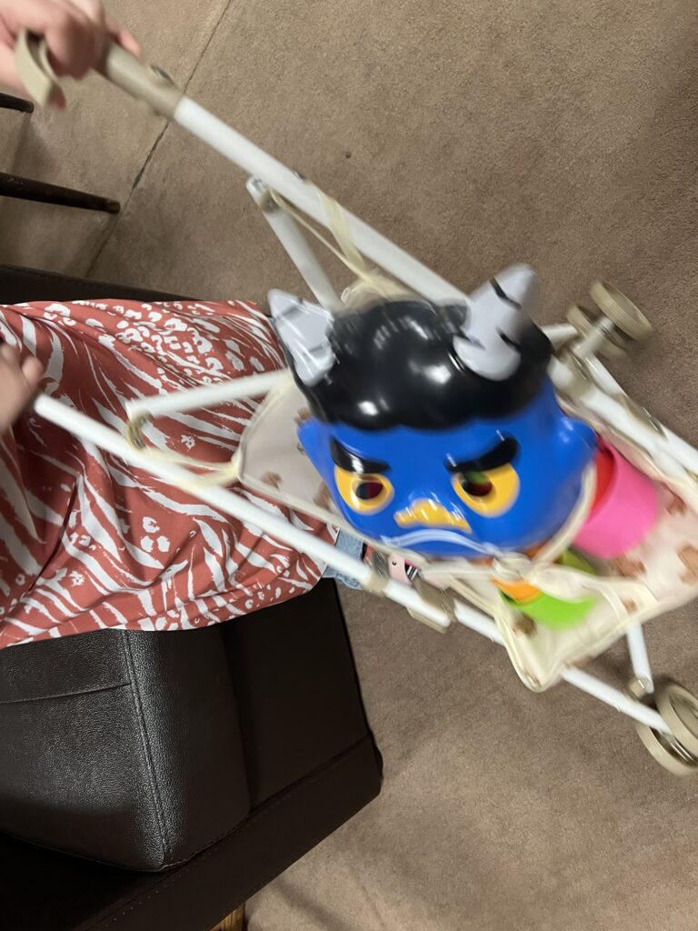 お正月に帰ってきてたときにすでに鬼のお面取り出してたわ。