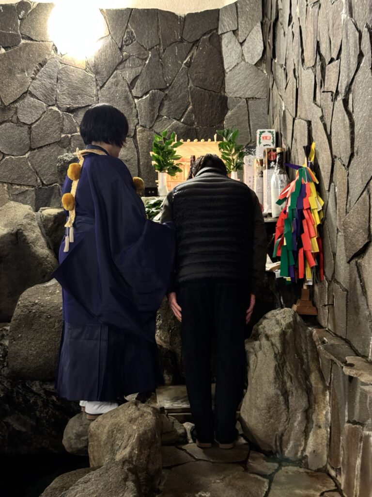旧暦のお正月にあたる日、源泉舘では毎年、岩風呂で神事を行ないます。
